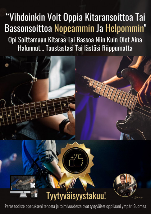 - Opi kitaran tai bassonsoittoa tehokkaalla ja nykyaikaisella opetusmetodilla, jonka avulla soittosi kehitys ei pysähdy enää koskaan